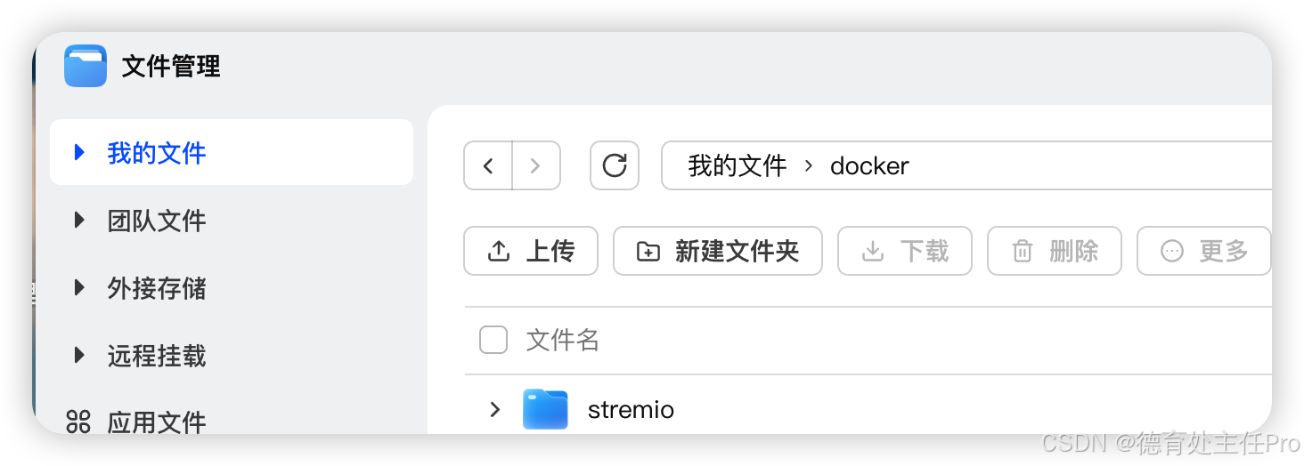 在"文件管理"的"docker"目录下创建一个"stremio"文件夹。