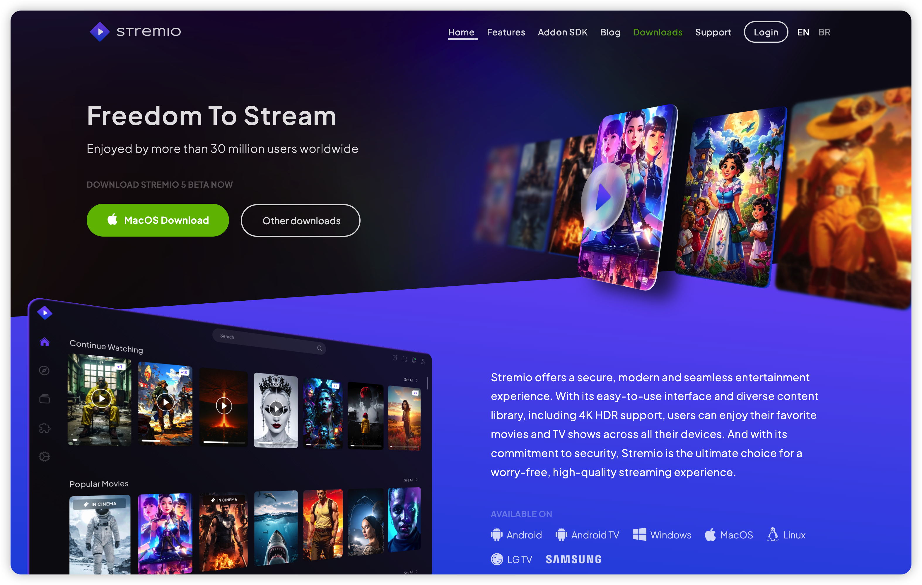 Stremio 是免费开源的一站式视频娱乐媒体中心,主打聚合全网影视资源与多设备无缝同步,帮你告别多个视频 APP 切换与会员费困扰。