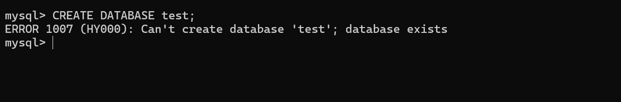 注意:在同一个数据库服务器中,不能创建两个名称相同的数据库,否则将会报错。