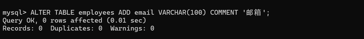 salary DECIMAL(10, 2) COMMENT '薪资',