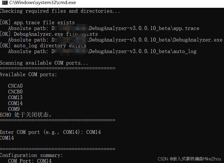 输入COM14 会打开一个新窗口 如果执行有错误 会在新窗口中输出