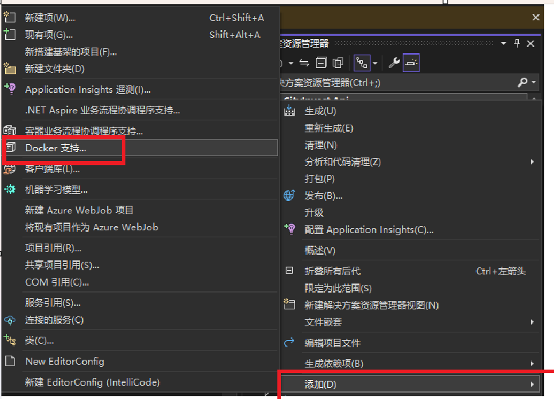 1.为项目添加docker支持,如下图: