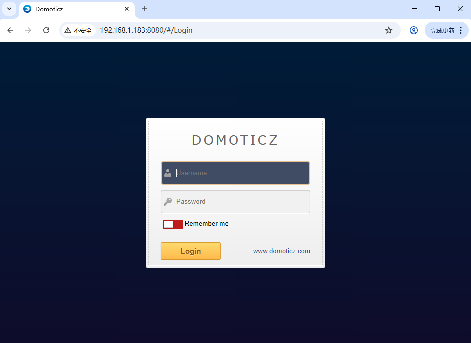 4,打开浏览器访问地址 http://你的服务器 IP:8080 ,就能看到你部署的 Domoticz 登录界面了。