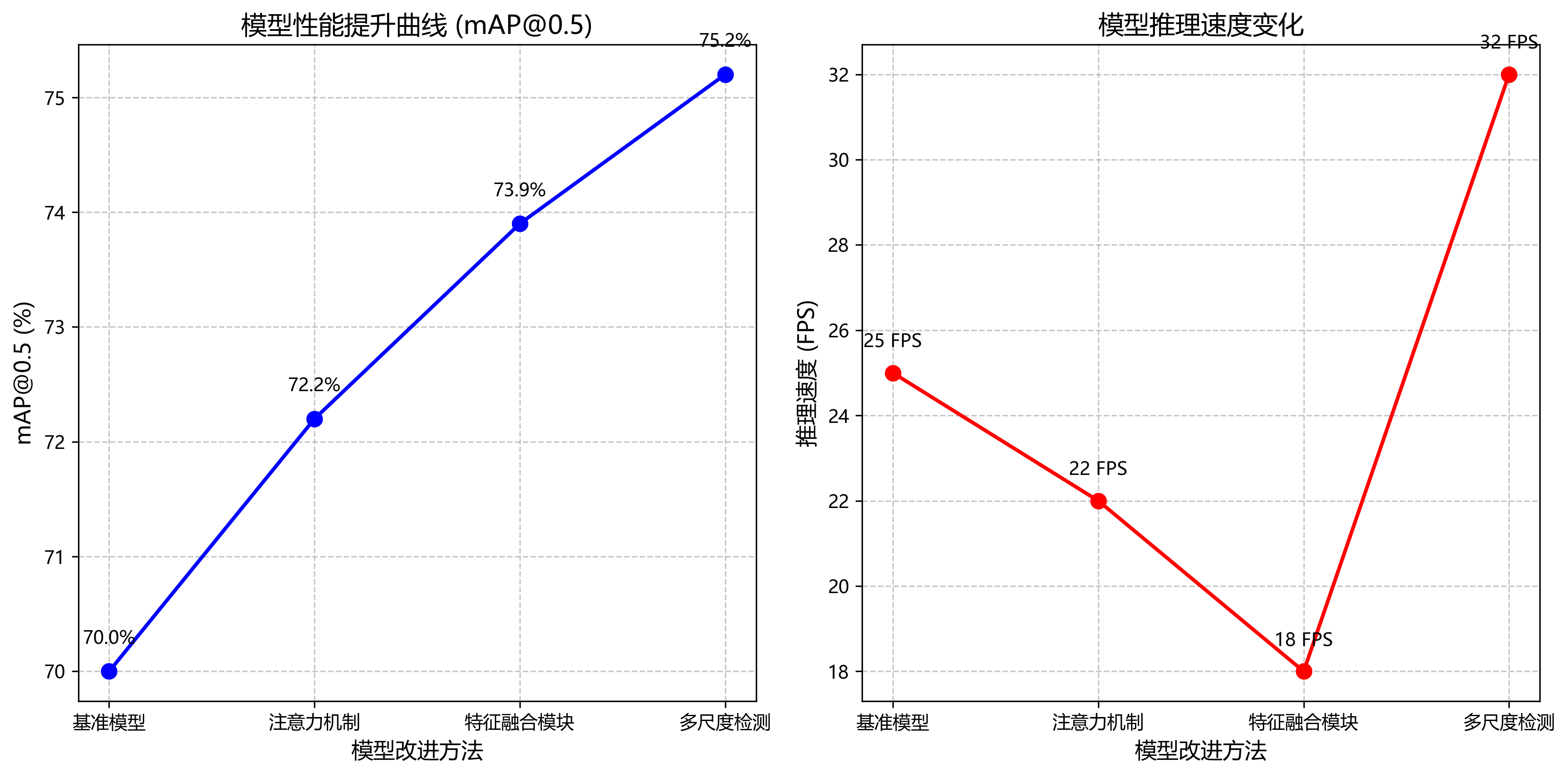 其中TP是真正例,FP是假正例,FN是假负例。在实际应用中,我们需要根据具体需求平衡这些指标。例如,在某些安全要求高的场景,我们可能更关注召回率,确保不漏检任何缺陷;而在速度要求高的场景,我们可能更关注精确率,减少误报导致的停机时间。⚖️
