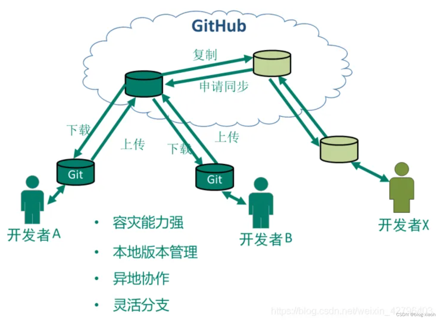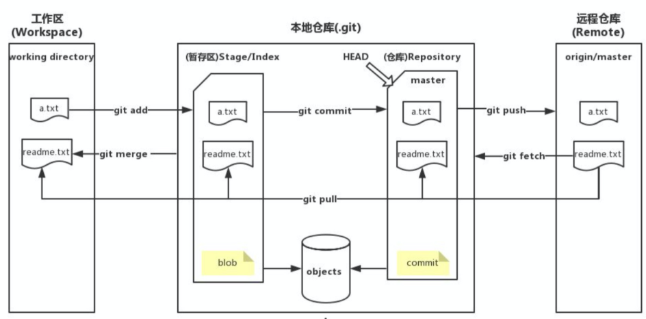 git pull = git fetch + git merge 拉取更新 下载远程代码 合并到本地