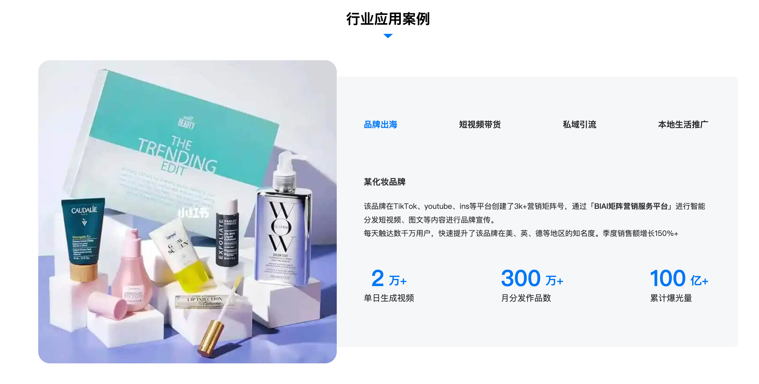 或许你会担心,AI生成的视频能不能直接商用?BIAI云控依托火山引擎的稳定算力,素材都经过版权校验和平台规则审核,国内外主流社媒、电商平台都能直接用,连发布都能在系统里完成"生成→账号管理→多平台发布→数据追踪"全流程,不用来回切换软件折腾。