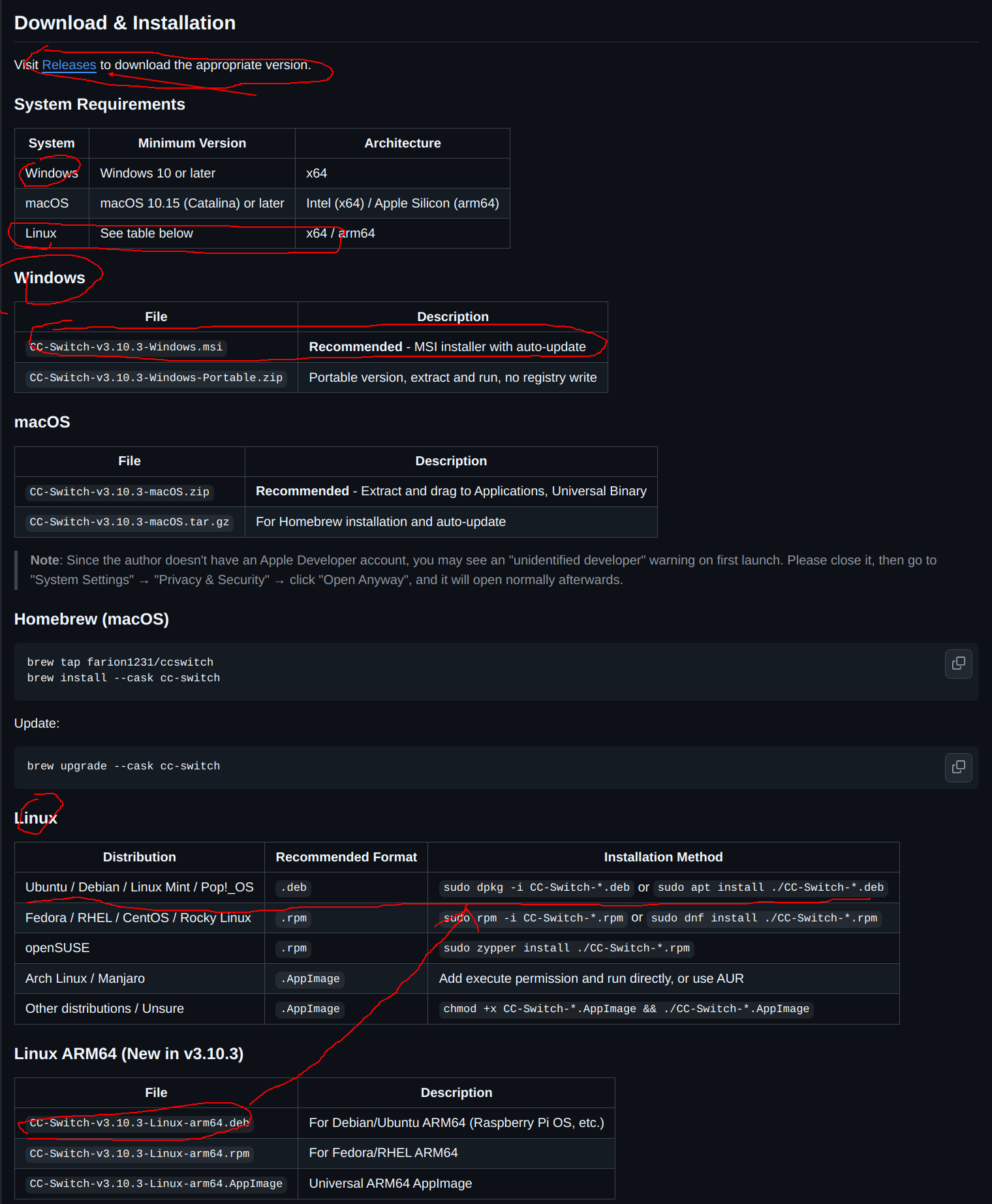 打开github链接:https://github.com/farion1231/cc-switch/releases/tag/v3.10.3(这里根据自己需要选择最新版或者合适的版本,这里目前是最新版)