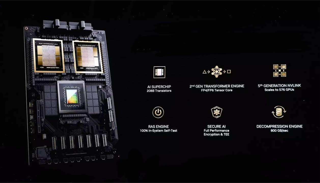 随着大模型参数规模、上下文长度和多模态能力持续提升,AI 算力的瓶颈正在从"峰值算力"转向显存容量、带宽与能效。在这一背景下,NVIDIA 于 GTC 2024 发布了基于 Blackwell 架构的 B200 GPU,其目标并非简单替代 H100 / H200,而是面向新一代超大模型工作负载进行系统级重构。