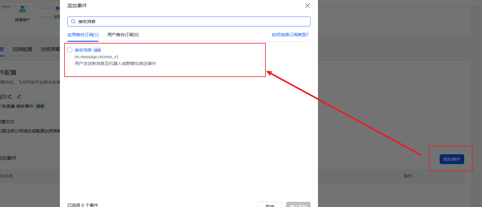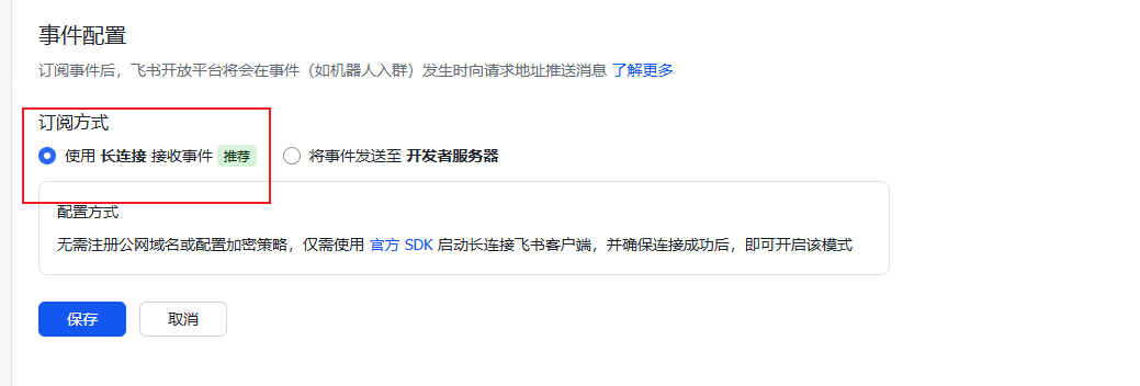 打开飞书配置事件与回调