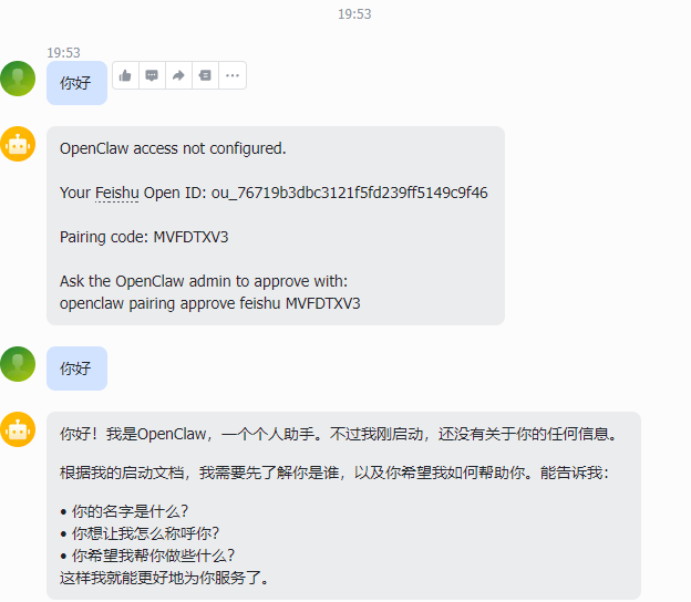 打开手机飞书,搜索你应用的名称,出现回复则配置成功