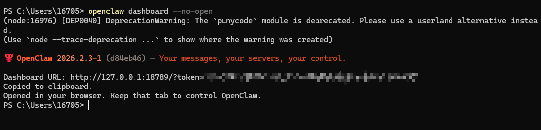 openclaw dashboard --no-open