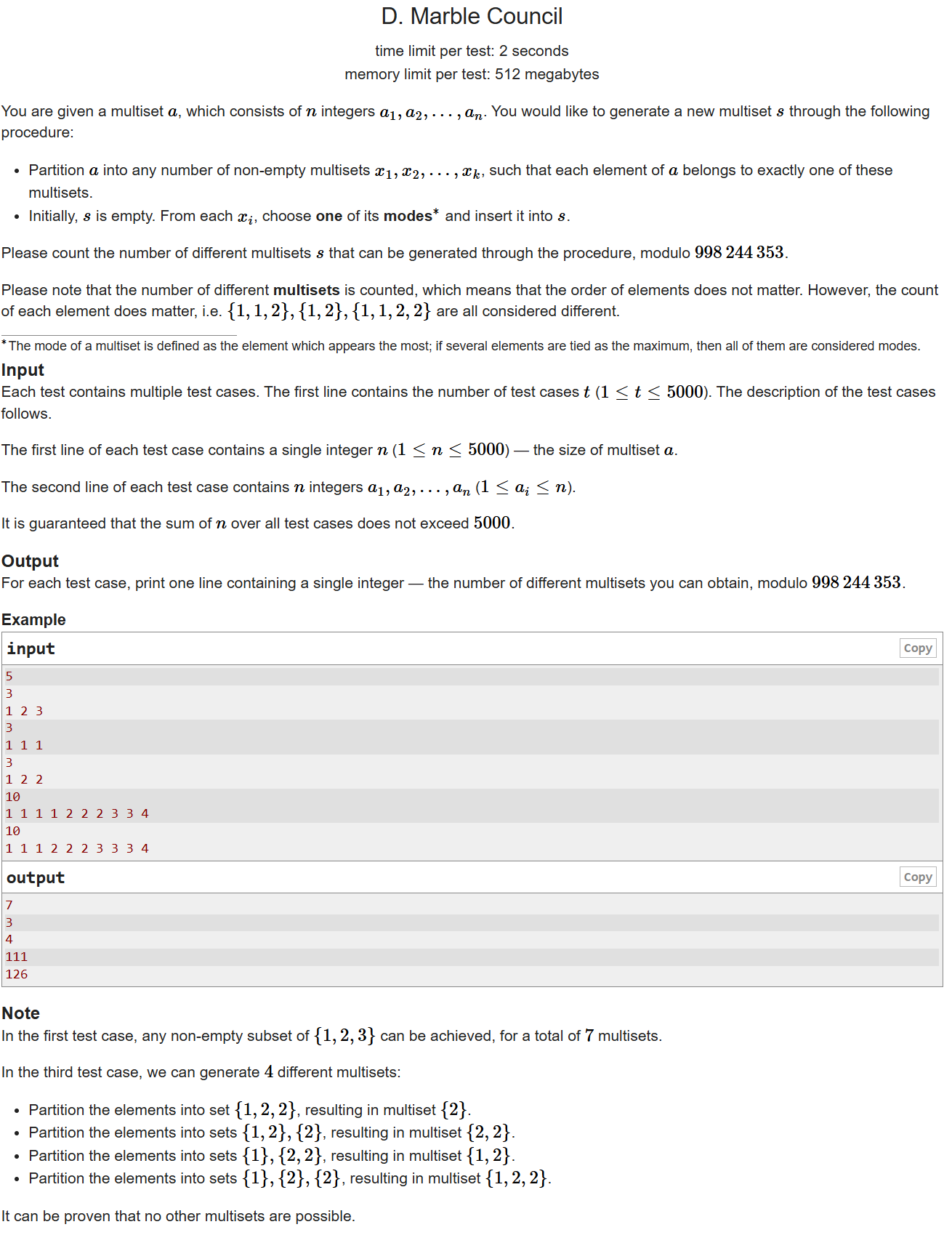dp[j]=(dp[j]+cnt[i]*dp[j-cnt[i]]%mod)%mod;