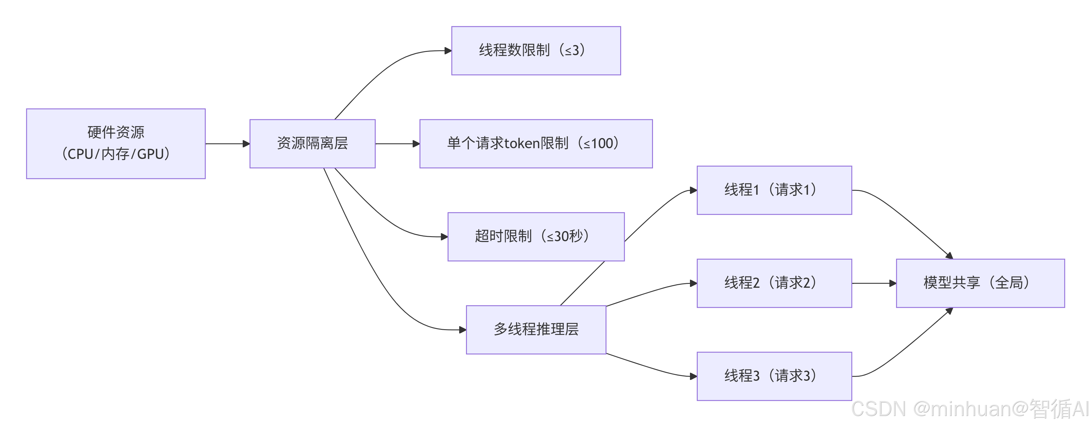 - 为每个线程或请求设定资源使用上限(如CPU时间、内存、GPU显存等),防止某个请求过度占用资源,影响其他请求的正常运行。