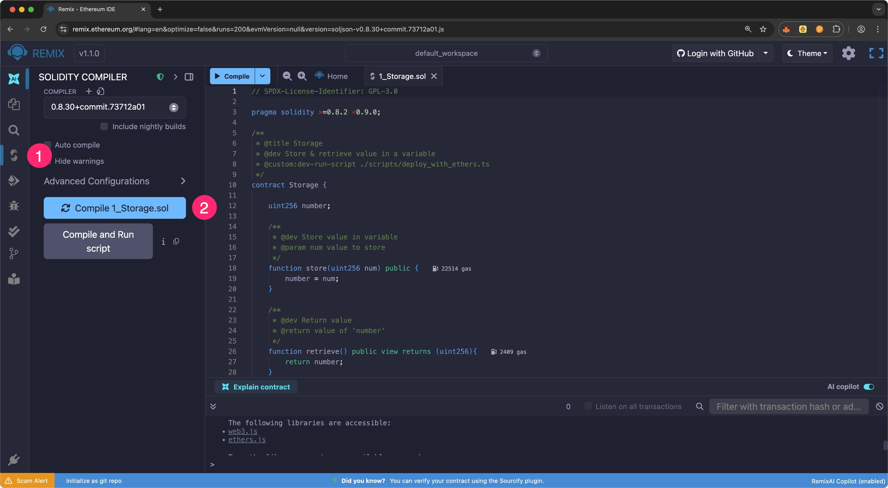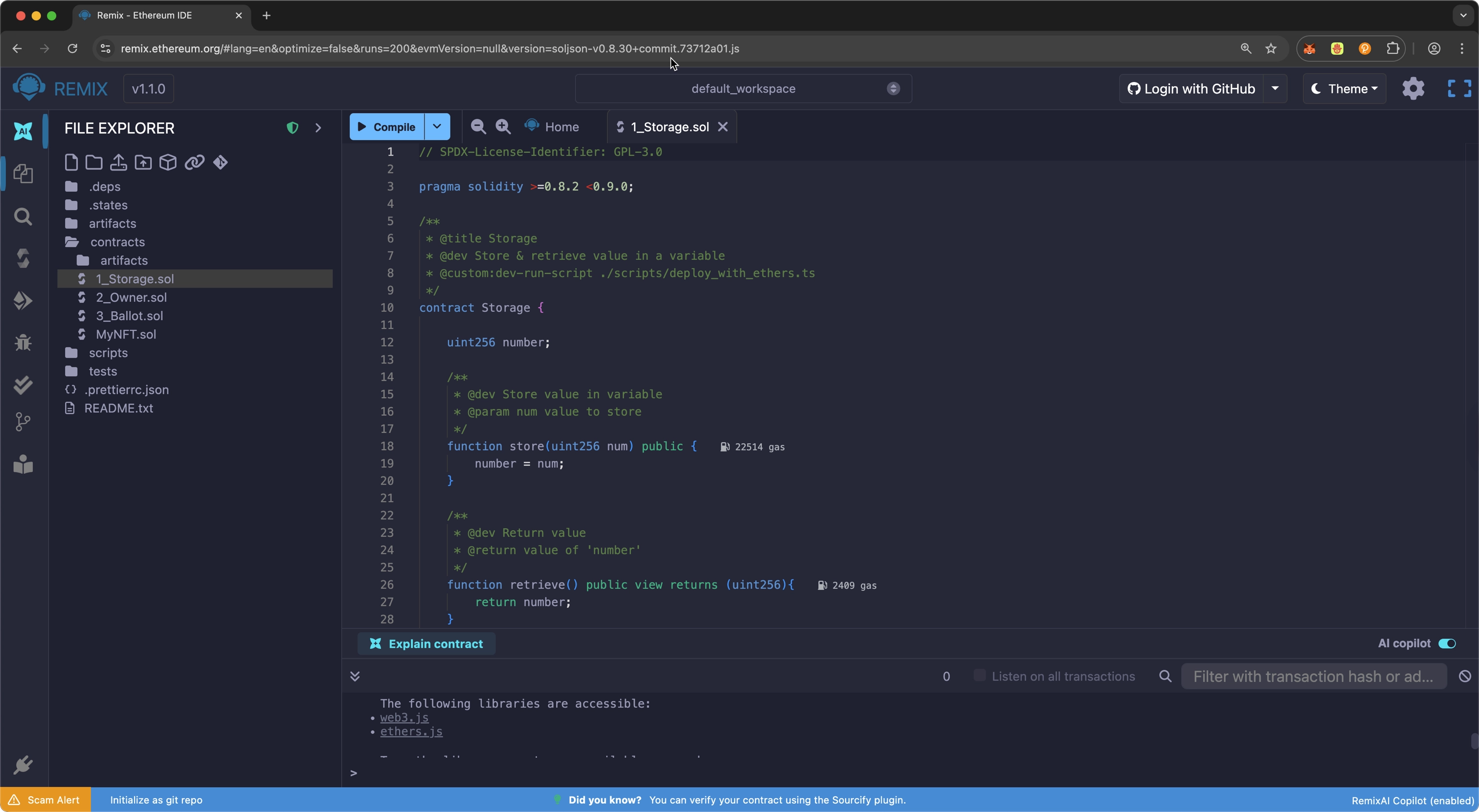 科普:Remix 默认提供的示例合约通常用于演示基本的"状态变量读写",便于新手理解"合约部署后如何与之交互"。