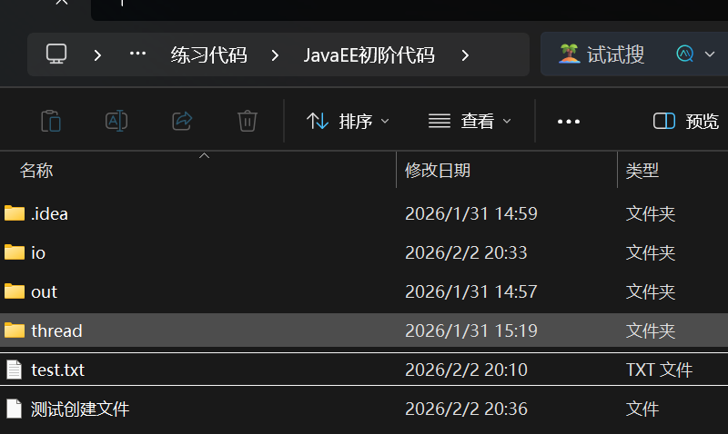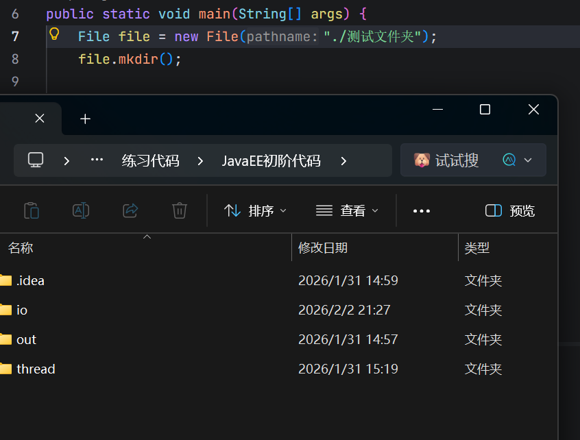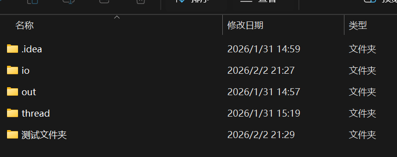 可以看到现在是没有名字叫"测试文件夹"这个目录的,执行代码会发现成功创建