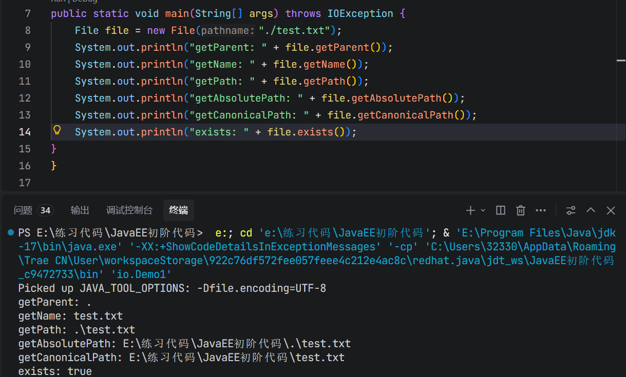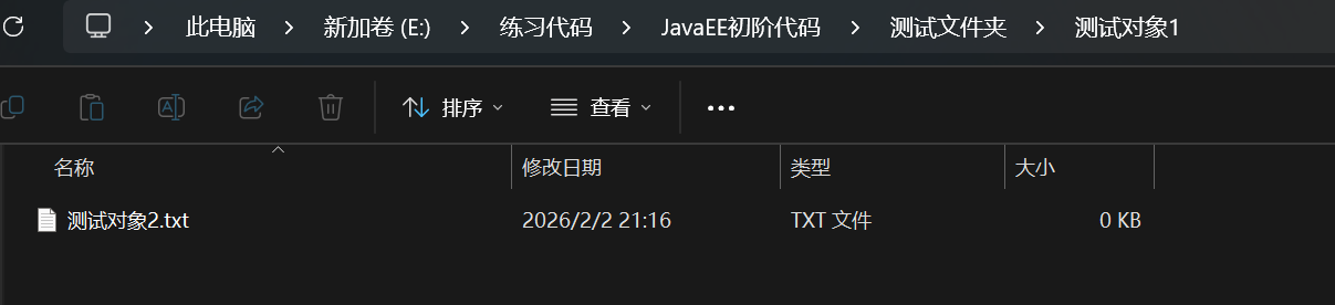 然后在通过File类来new出一个file对象,之后我们对这个file对象进行的各种操作其实就是对这个text文件进行操作.