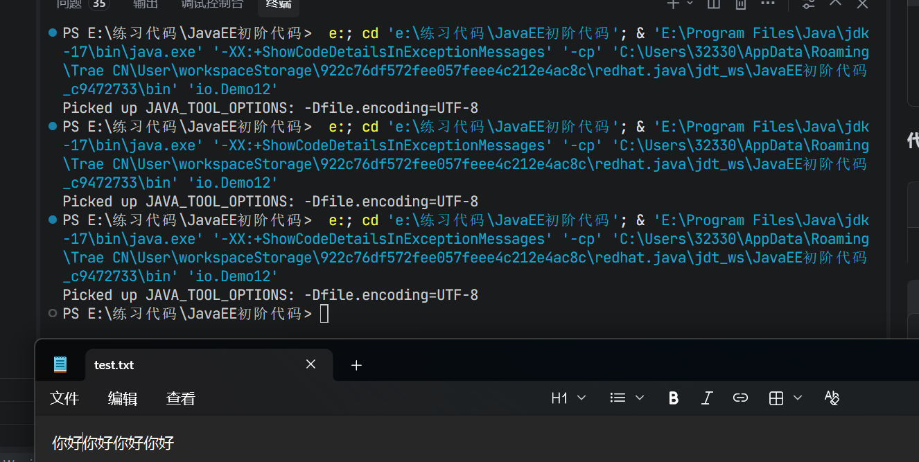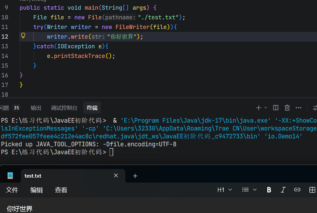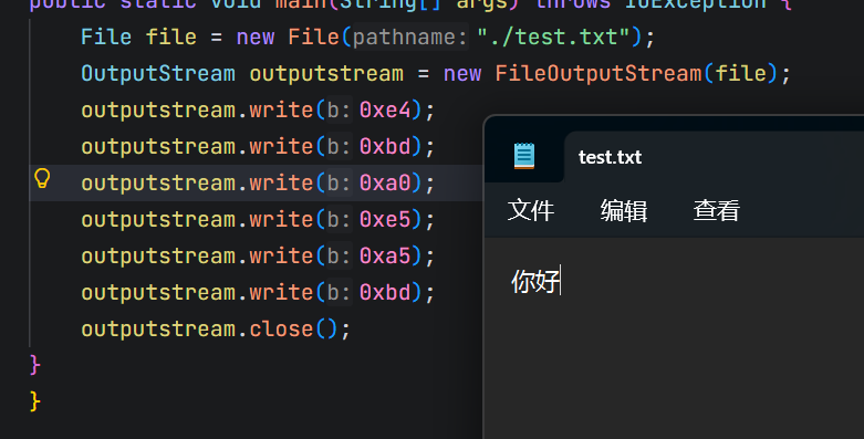 此时文件里面的内容就变成"你好"了