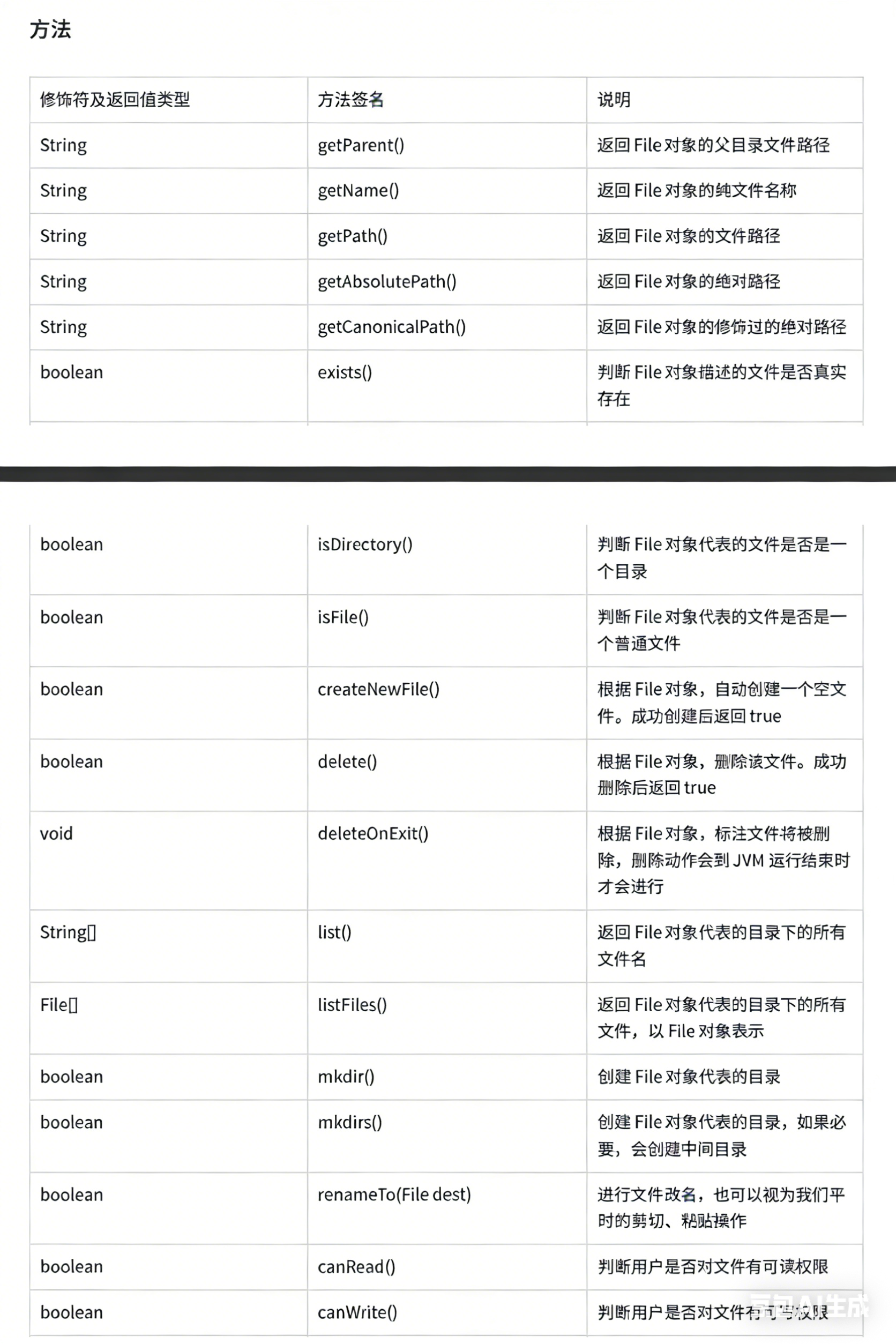 下面看看File类的各种方法: