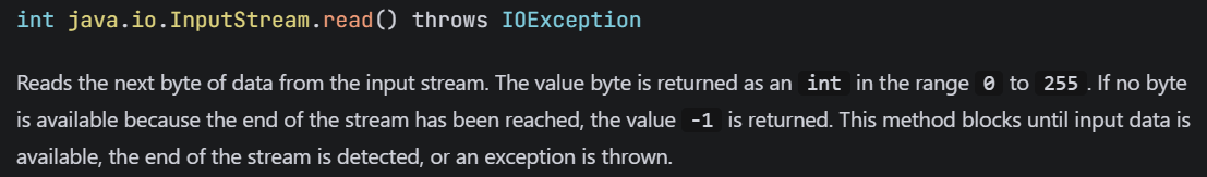 read()是一次读一个字符,-1表示结束