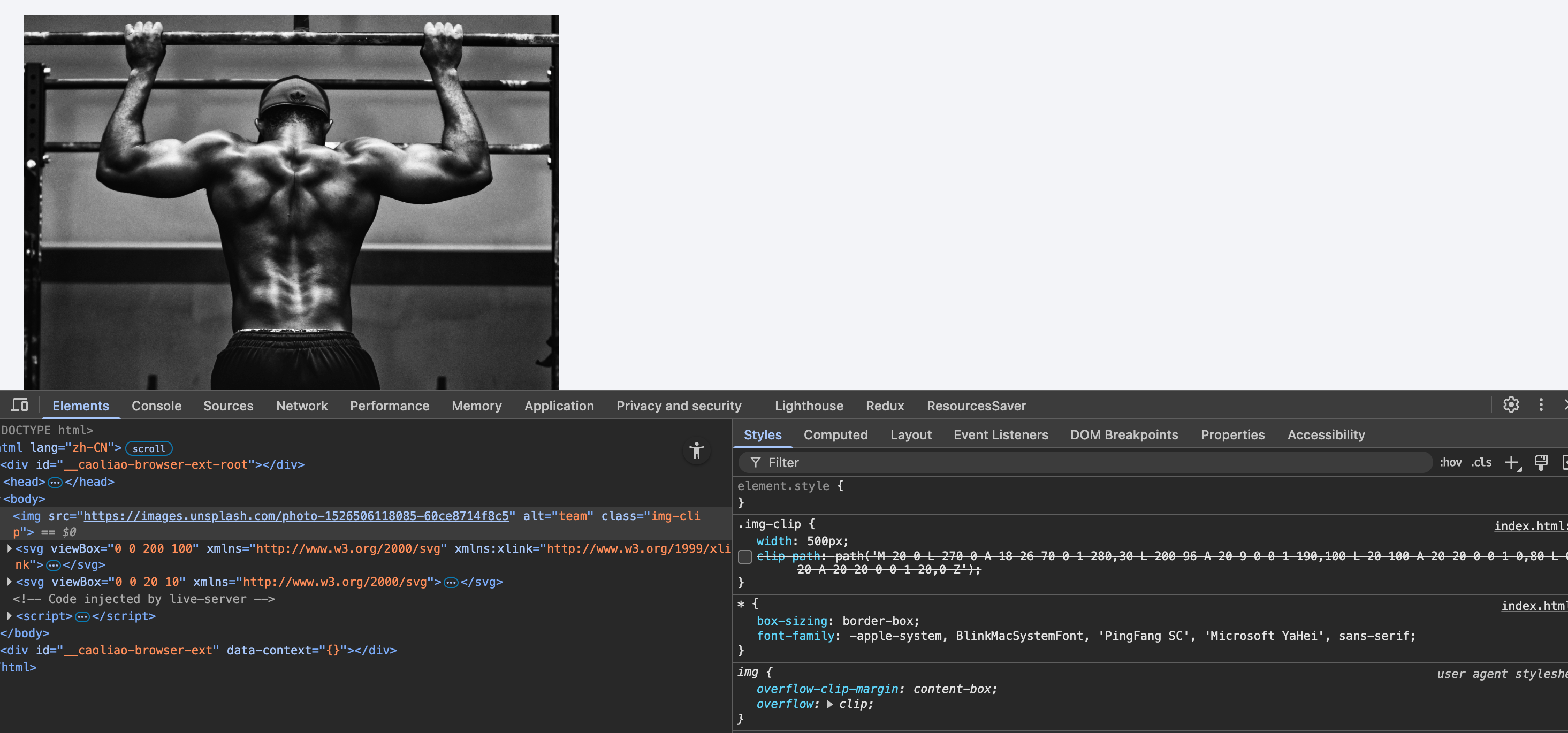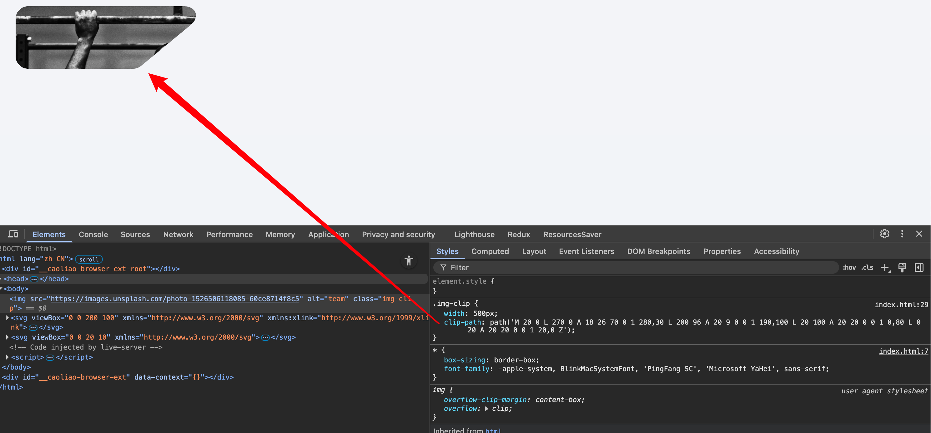 用到的就是css的属性clip-path,官方文档:https://developer.mozilla.org/zh-CN/docs/Web/CSS/Reference/Properties/clip-path