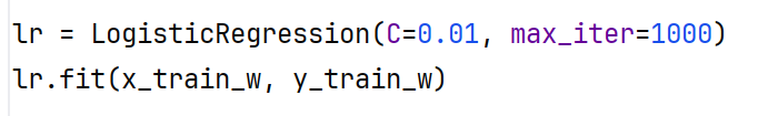 设置C=0.01值越小表示正则化越强,用来防止模型过拟合。(后期可以调整参数来优化模型) max_iter=1000:设置最大迭代次数为 1000,确保模型能收敛。