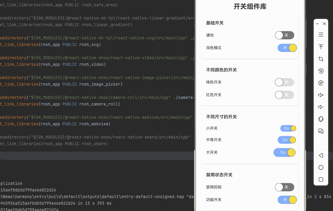 Switch 开关是移动应用中常见的二选一交互组件,用于开启或关闭某个功能、设置选项等。react-native-switch 是一个简单易用的开关组件库,提供丰富的样式配置和交互效果,完全支持鸿蒙系统。使用 react-native-switch 可以快速构建美观的开关控件,大大提升开发效率。