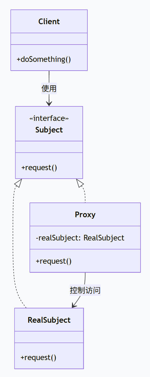 | 保护代理 | 访问控制 | 权限检查,控制对敏感对象的访问 |
