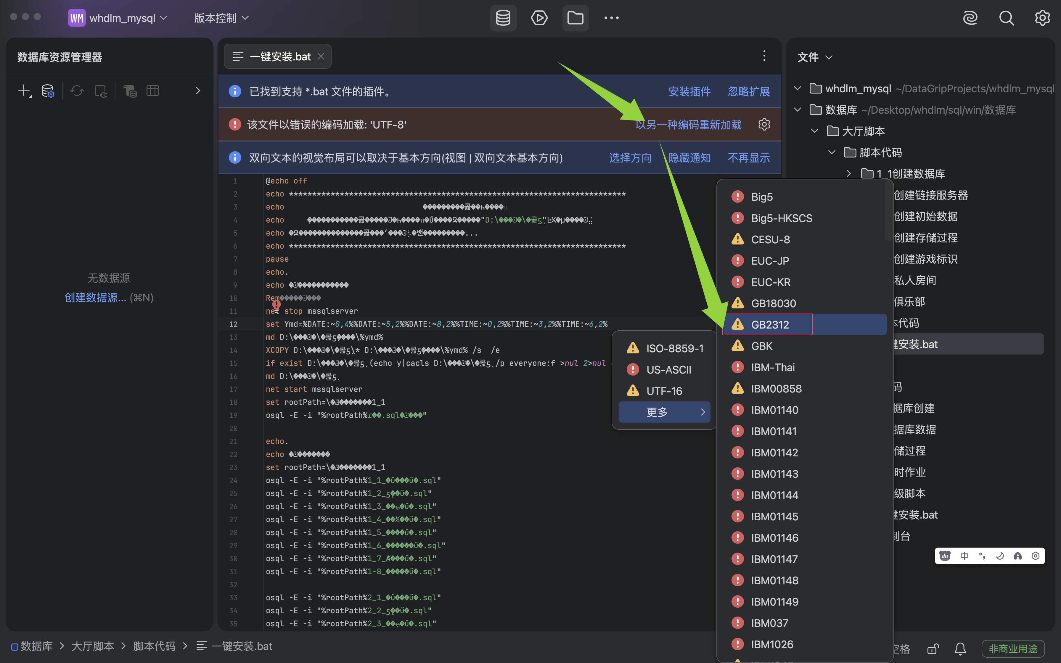 以另一种编码重置加载,选择GB2312