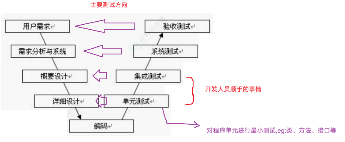 - 单元测试计划(对应详细设计):把模块再拆到最小(类、小接口、单个方法),挨个测这些小单元自己的逻辑,只看它自身输入输出对不对,不管和其他单元的交互。