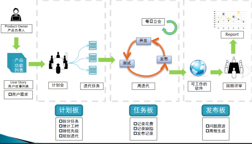4>.**每日例会:**每个团队每日召集站立会议,成员回答昨天做什么今天预计完成什么,过程中可能会出现什么问题