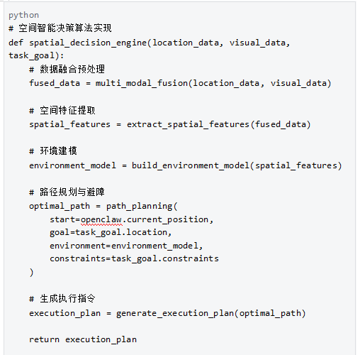 本模块详细阐述了基于多源数据融合的空间智能决策引擎实现方案,通过将定位数据与视觉数据进行深度融合,并结合 AI 自适应算法和空间推理引擎,为 openclaw 提供了更智能的决策制定能力。