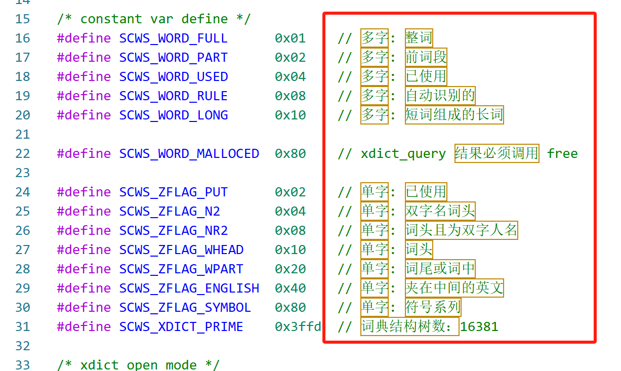 - 打开 scws.h,加入以下代码块,否则编译成功后对应文件夹没有lib文件。