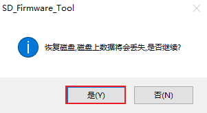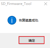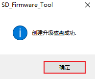 请耐心等待5min左右,在弹出的窗口中点击"确定",SD升级卡制作完成。