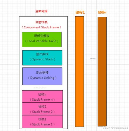 - 方法与栈帧一一对应:一个方法被调用,对应一个栈帧被创建并压入(push)虚拟机栈;一个方法执行完毕,对应一个栈帧被弹出(pop)虚拟机栈并销毁。