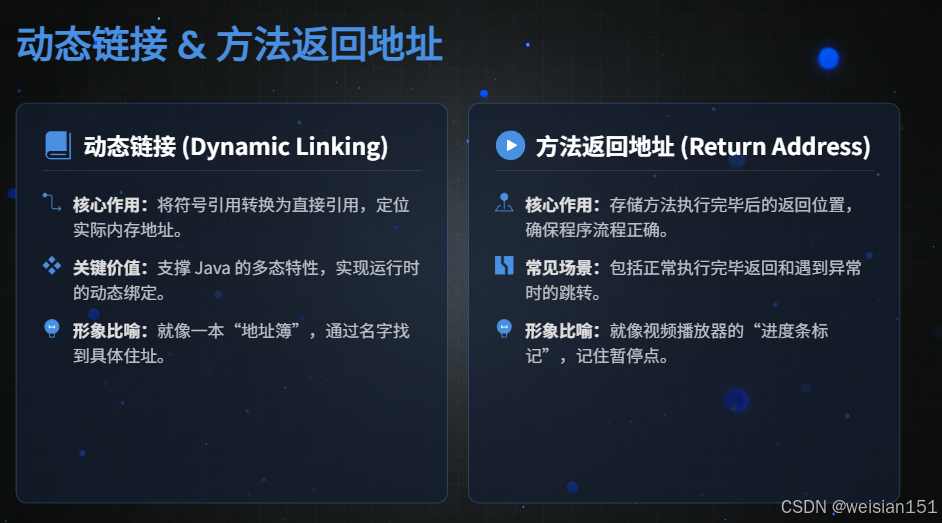 │ 动态链接 (Dynamic Linking) │ ← 指向运行时常量池的方法引用