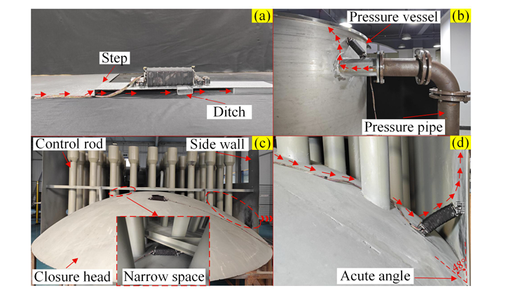 研究团队展示了该连续体巡检机器人在核电设备中的巡检应用,包括: