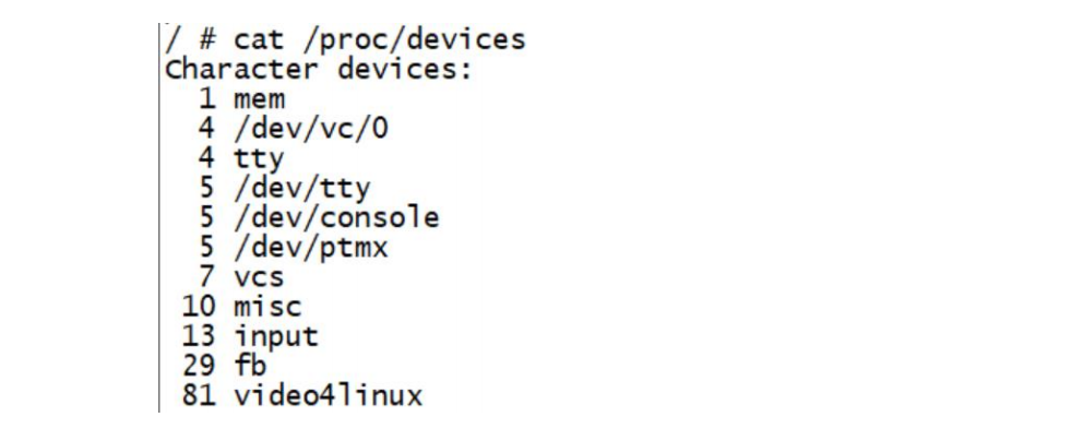 号,输入命令"cat /proc/devices"可以查看当前已经被使用掉的设备号,如图 40.2.2.1 所示(限