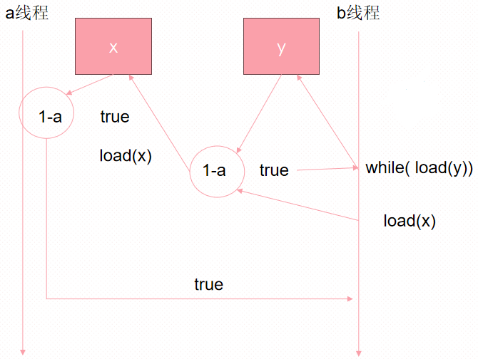 想象两个线程在玩"你拍一我拍一"的远程游戏,但中间隔着一条可能乱序传送物品的魔法通道: