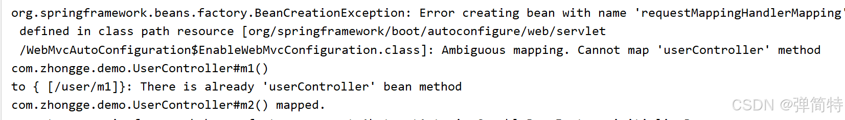 是这样的@RequestMapping它的作用是将我们的资源路径与对应的方法进行映射。那么的话,它底层是一个类似于map集合的形式,将键值对给存起来。我们的资源路径就是key,我们的方法就是value。那么此时啊我们的key是不可以重复的,也就是说我们的资源路径是不可以重复的。