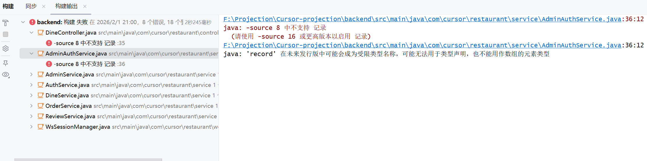 升级完成后,新的问题浮现出来。构建系统报告了8个编译错误,核心提示是"source 8中不支持记录"。问题根源在于项目中使用Java Record类(Java 14引入的特性),在配置变更后需要更高的源代码级别支持。