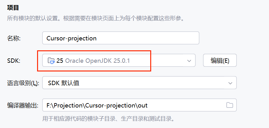 我发现了环境配置中的版本错位问题。pom.xml中声明使用Java 21,但项目模块设置中指定的SDK却是OpenJDK 25。这种配置不一致立刻导致了构建失败,编译器抛出熟悉的错误信息:"java: 错误: 不支持发行版本 5"。