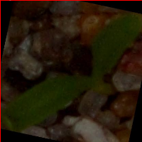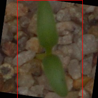 如图所示,糖用甜菜幼苗处于萌发后的早期阶段,其显著特征是两片鲜绿色的子叶清晰可见,子叶呈椭圆形且舒展状态良好,叶片表面光滑无损伤,显示出较强的生命力。背景是由大小不一的颗粒状基质构成,这些质地疏松的基质为幼苗提供了适宜的生长环境。这种视觉特征正是我们系统需要识别和分类的关键对象。