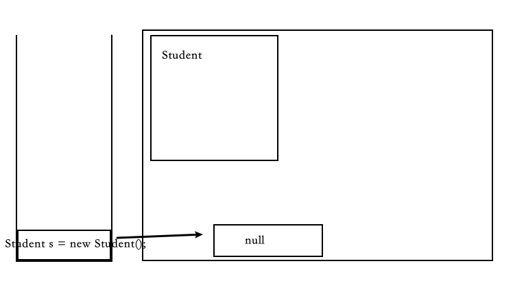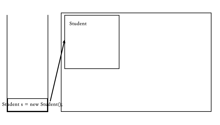 根据 JVM 内存区域的分配我们可知,new Student(); 是在 Java 堆中开辟了一块内容,用于存放 Student 相关内容,(在这里需要用到方法区我没有详细标出)