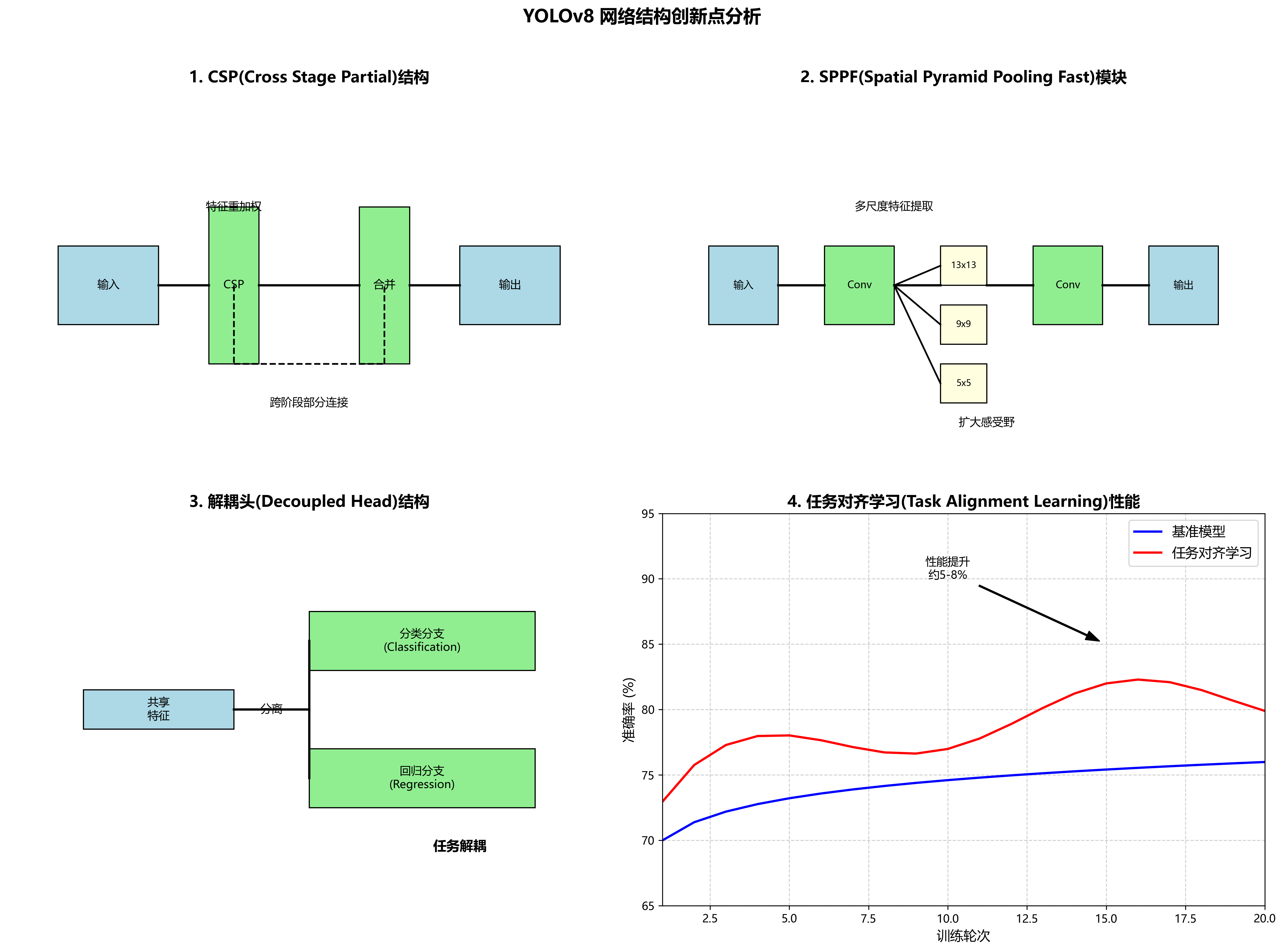 YOLOv8作为最新版本,采用了更先进的网络结构和训练策略。其主要特点包括: