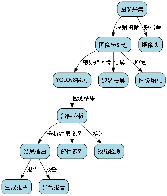 YOLOv8检测模块是整个系统的核心,负责对预处理后的图像进行关键部件检测和识别。我们基于官方YOLOv8模型进行了针对性的优化和调整,主要包括: