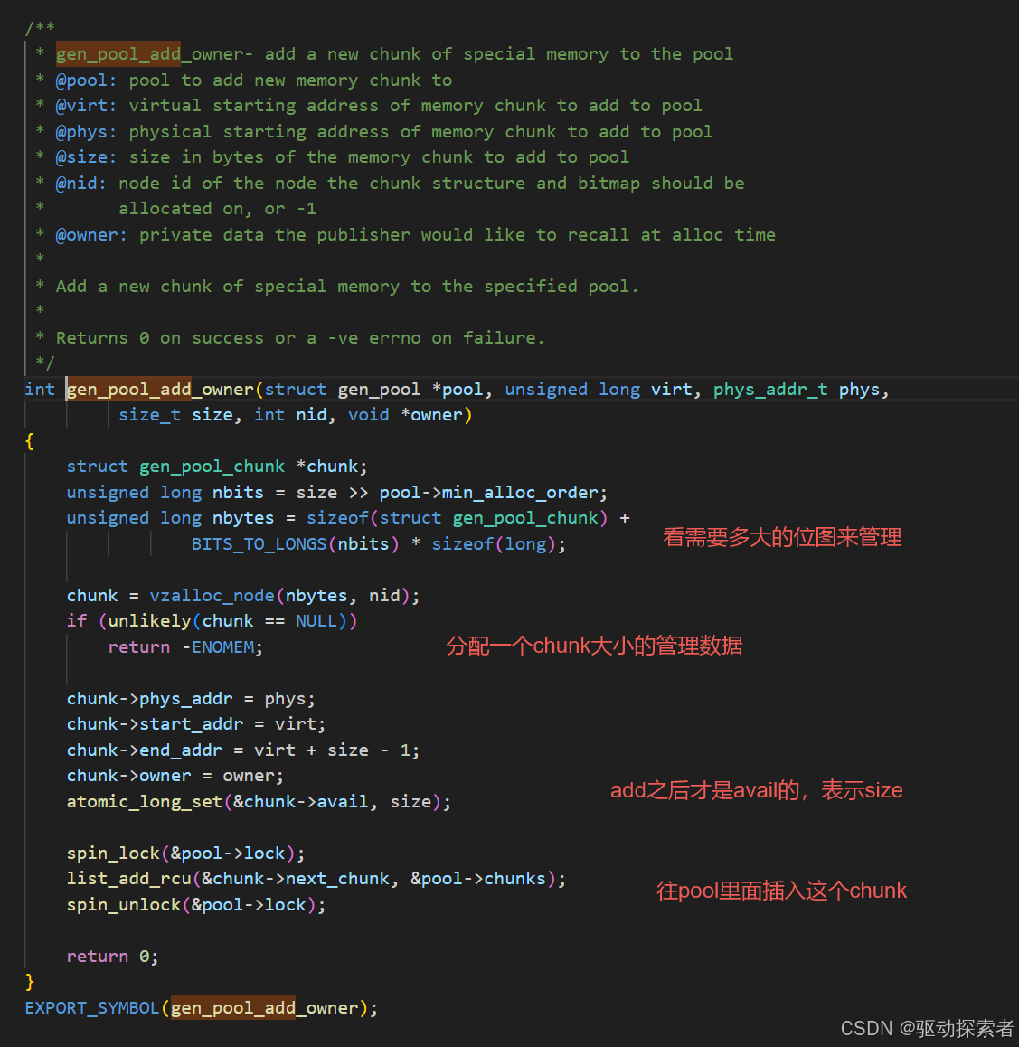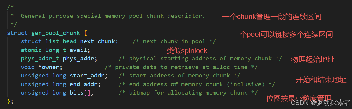 genpool 并不要求所有内存一次性加入,而是引入了 chunk 的概念。