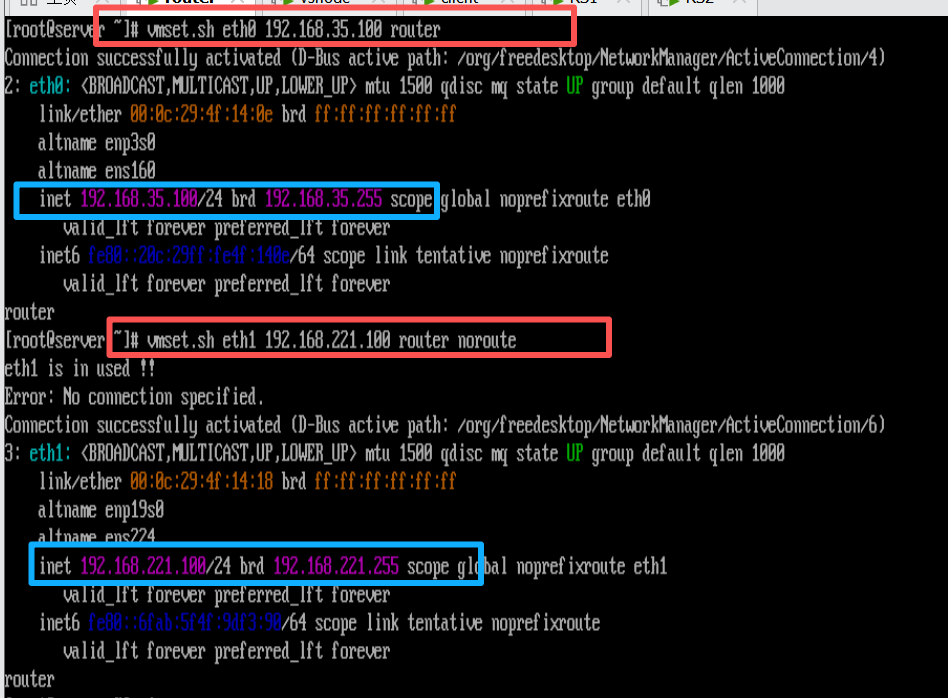 [root@router ~]# vmset.sh eth1 192.168.221.100 router noroute