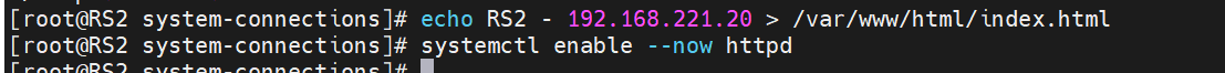 [root@RS2 system-connections]# echo RS1 - 192.168.221.20 > /var/www/html/index.html