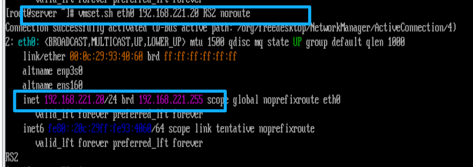 [root@RS2 ~]# vmset.sh eth0 192.168.221.20 RS2 noroute