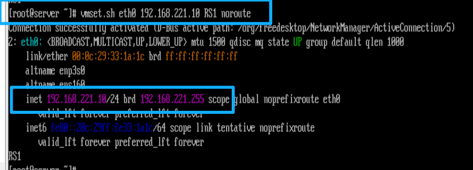 [root@RS1 ~]# vmset.sh eth0 192.168.221.10 RS1 noroute